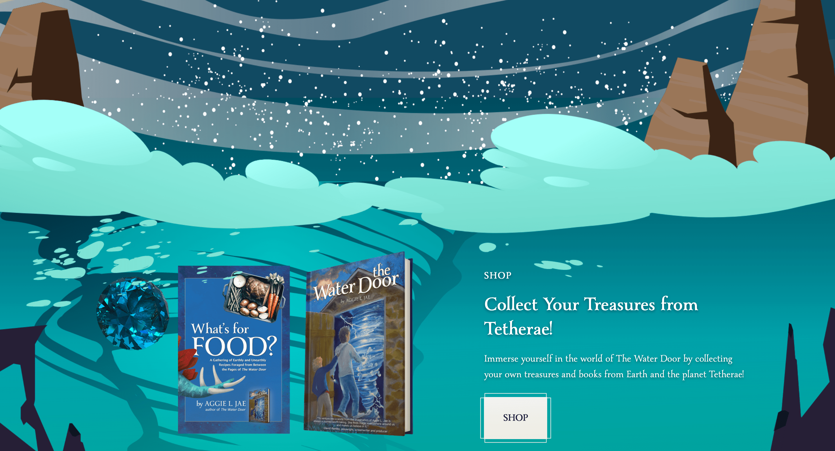 The blue diamond swirling in the ocean mimics a key detail from The Water Door