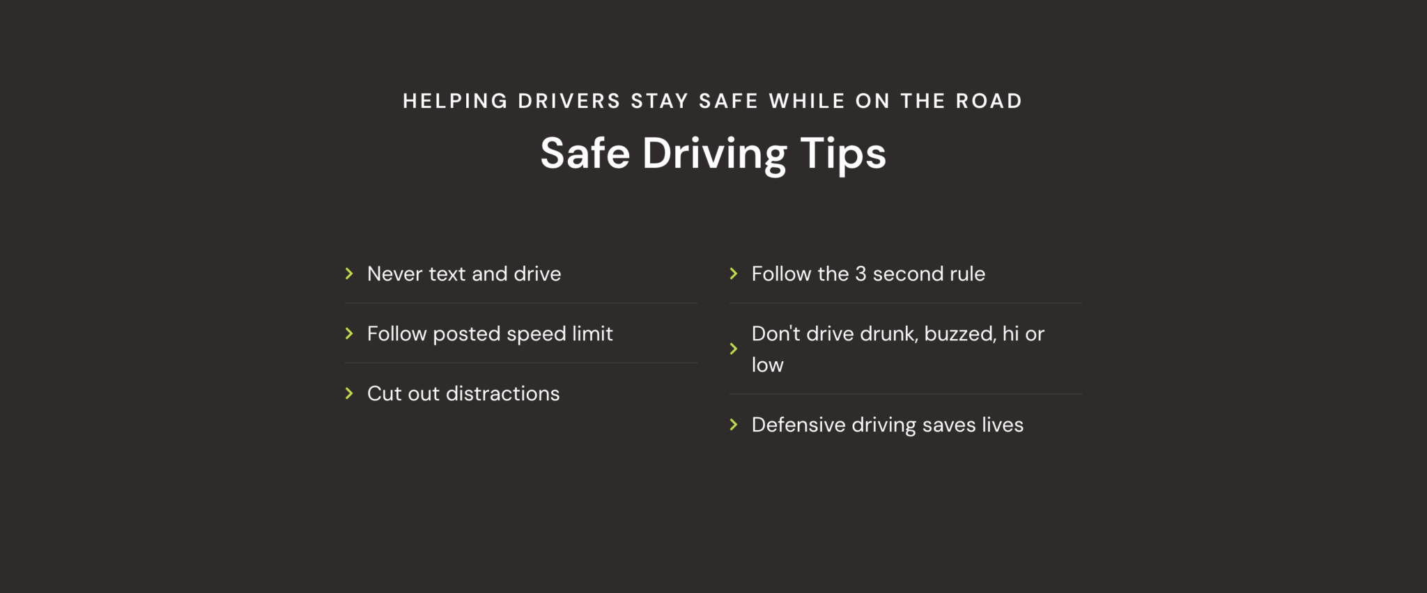 The safe driving tips communicate the company’s mission.