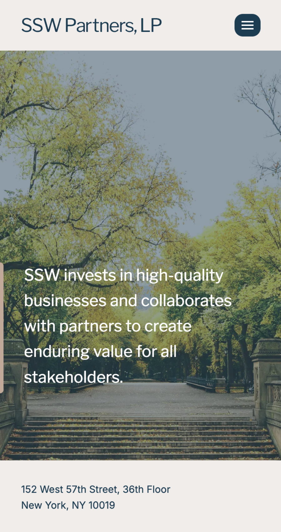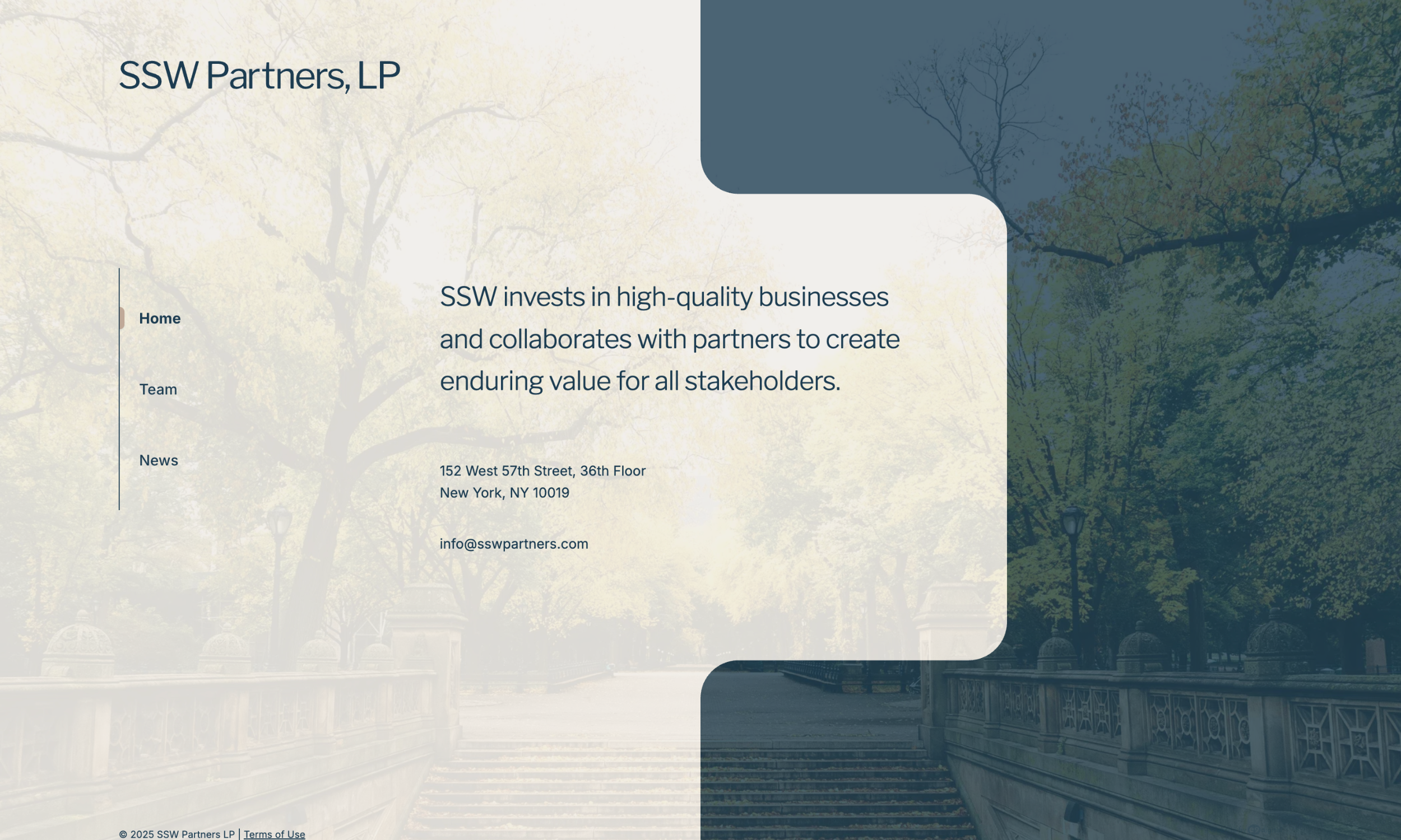 - A balanced homepage photo of Central Park, highlighting the company’s New York presence
