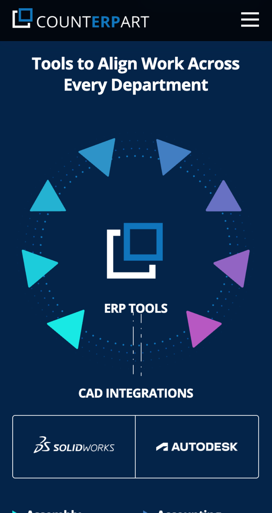 However, the company’s old website was hindering their ability to effectively reach their target audience of engineering, procurement, inventory, project management, owners and general managers, and manufacturing. COUNTERPART trusted us with the project because we’d previously worked with a member of their marketing team. They knew they could rely on us for a smooth delivery and quality follow-through.