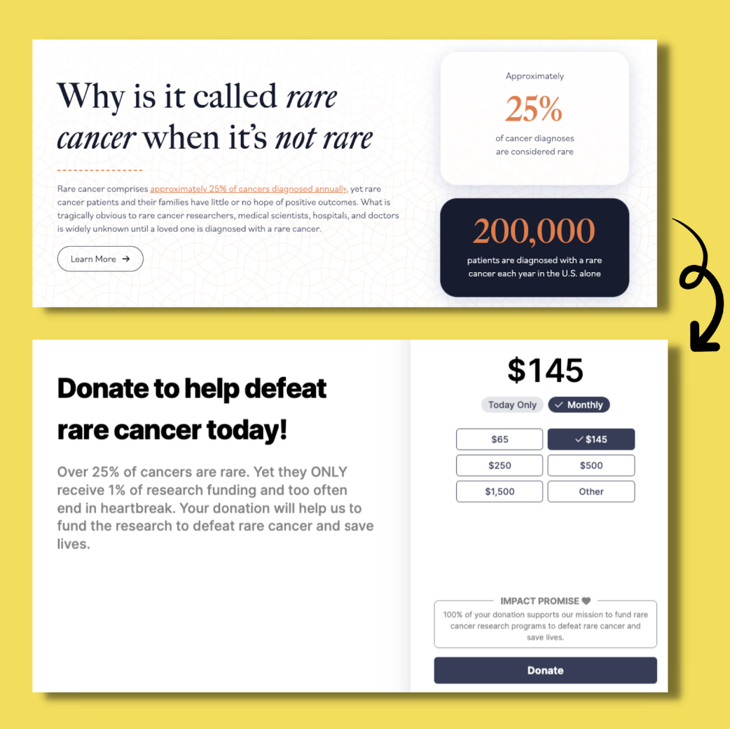 To give the website a modern feel, e9digital implemented UX best practices to craft a website that properly displayed everything from the foundation’s mission, their upcoming events, to their newsletter archive. A clean header with active CTA buttons highlights two critical actions for the website: to donate to the cause or sign up for the newsletter. The text-only hero image speaks to the urgency of the situation. People are succumbing to rare cancers far too often–they and their families need help now.
