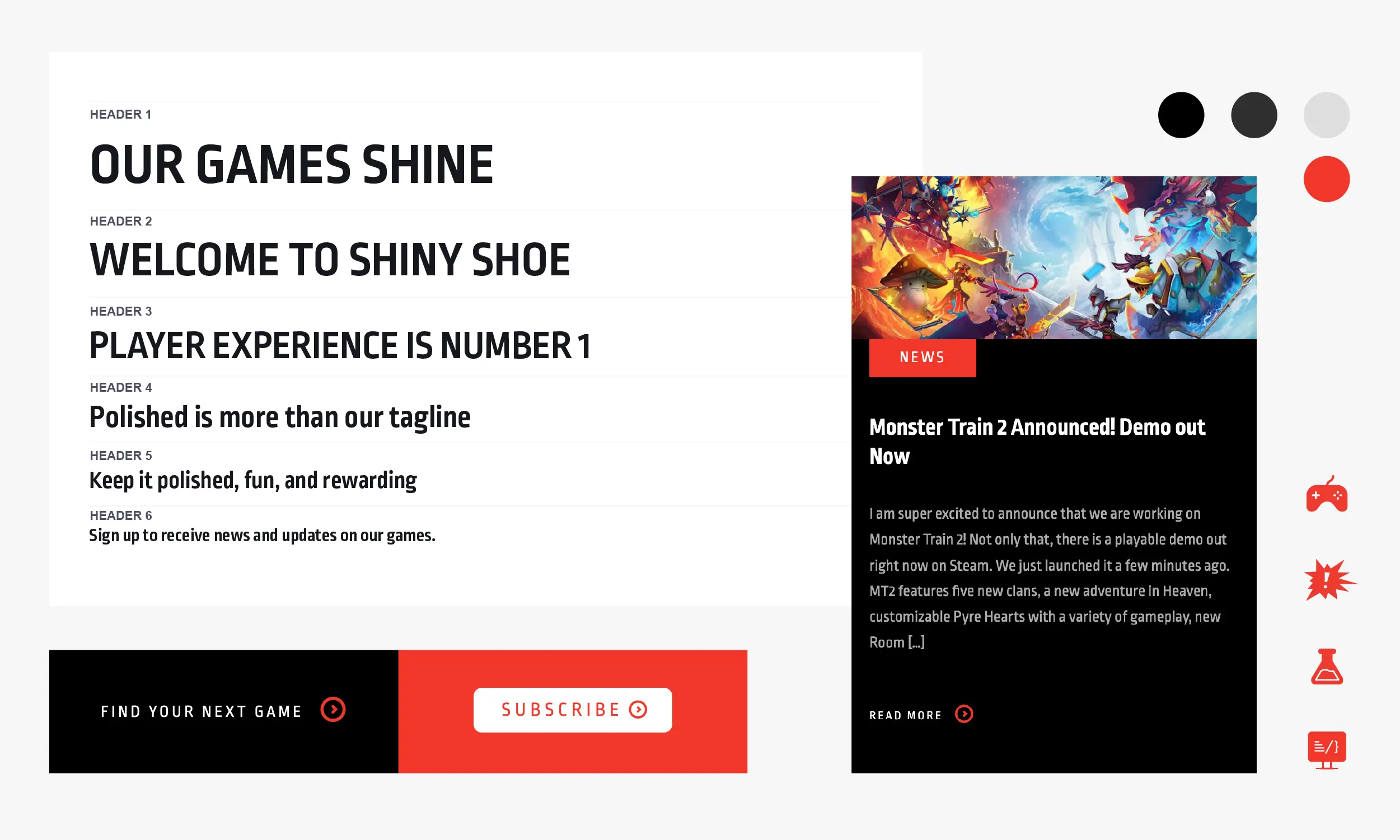 The final site struck exactly the balance the team needed; fun and bright, but still polished enough for conservative corporate partners. Shiny Shoe loved how the design and copy worked together to highlight their history, talent, and technical capability.